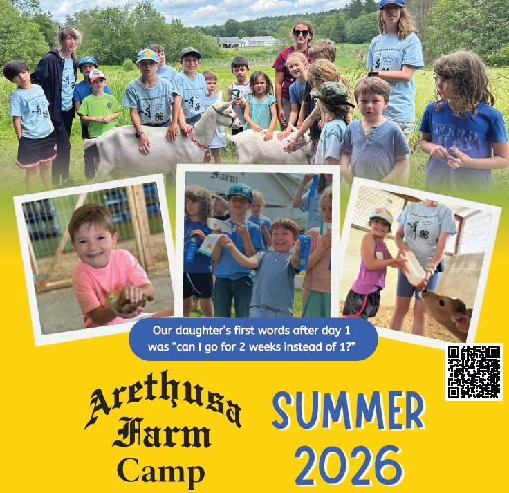 Give the gift of a meaningful summer adventure at Arethusa Farm 4-H Camp! Held on the scenic Arethusa Farm Foundation property in Litchfield, CT, this hands-on week of camp immerses children in agricultural discovery and outdoor learning. Campers ages 5–13 explore farm animals, horticulture, environmental science, and more under the guidance of expert educators and 4-H youth leaders. From caring for animals and working in gardens to learning about sustainability and farm life, this experience builds confidence, curiosity, and lasting memories.