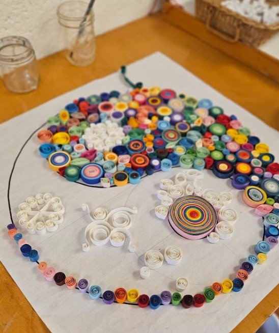 Created by our Upper Elementary students, this beautiful quilled artwork features intricately rolled and shaped paper arranged in the form of a peace sign. Each carefully placed coil reflects the creativity, patience, and collaboration of our students. A meaningful symbol of unity and hope, this one-of-a-kind piece is a wonderful way to celebrate the artistry and spirit of our school community.
