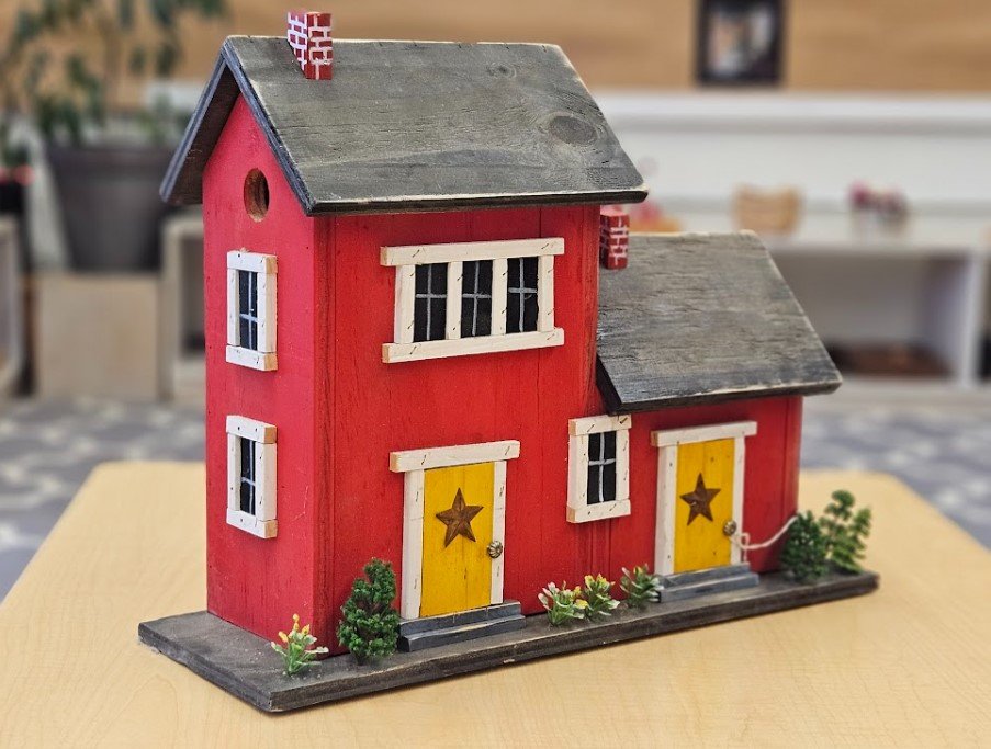This charming birdhouse has been lovingly decorated by the children of our Young People’s Community. Using their thumbprints to create colorful designs, our youngest learners explored sensory experience, coordination, and joyful self-expression. Each tiny print reflects the beauty of early Montessori work: hands-on discovery, creativity, and pride in contribution.