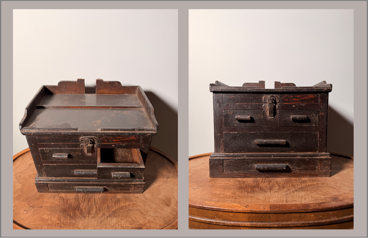 This elegant writing chest would have traditionally been used for calligraphy, blending beauty and function. It is a wonderful piece for collectors and admirers of Asian art.